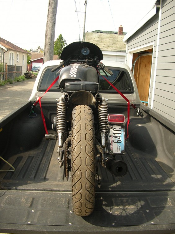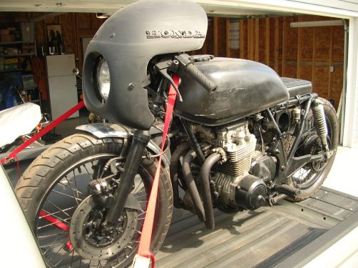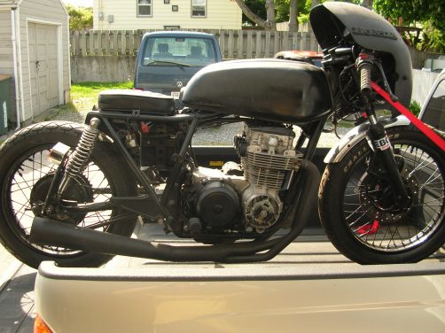At a local motorcycle shop called Twinline, Michael from MISSIONmoto met a cool dude named Levi…from the tribe that is 🙂 Turns out that Levi is part of the brethren and his older brother is starting a church down in Portland. He ended up donating two non-running bikes. Below is one of them.